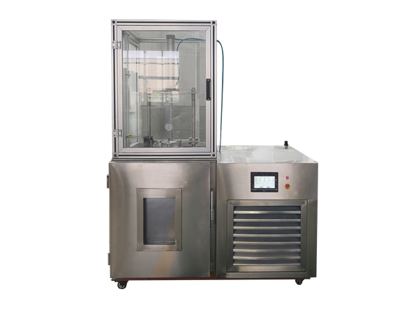 本機(jī)主要由低溫箱、氣動(dòng)升降系統(tǒng)、試驗(yàn)裝置等組成。由低溫箱制冷,控溫精度高,代替了早期的干冰制冷,方便實(shí)用,操作簡便。四種試驗(yàn)裝置可供選擇:1、拉伸耐寒試驗(yàn)裝置:可進(jìn)行符合GB 6035《硫化橡膠拉伸耐寒系數(shù)的測(cè)定》的試驗(yàn);2、壓縮耐寒試驗(yàn)裝置:可進(jìn)行符合GB 6034《硫化橡膠壓縮耐寒系數(shù)的測(cè)定》的試驗(yàn);3、壓縮永久變形試驗(yàn)裝置:可進(jìn)行符合GB/T 7759.2《硫化橡膠或熱塑性橡膠 壓縮永久變形的測(cè)定 第2部分:在低溫條件下》的試驗(yàn);4、低溫脆性沖擊試驗(yàn)裝置:可進(jìn)行符合GB/T 1682《硫化橡膠低溫脆性的測(cè)定 單試樣法》、GB/T15256《硫化橡膠低溫脆性的測(cè)定 多試樣法》以及GB/T 5470《塑料沖擊法脆化溫度的測(cè)定》的試驗(yàn)。